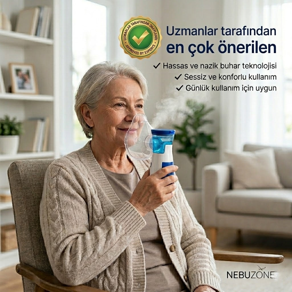 Ani öksürük ve nefes zorlanmalarında pratik çözüm. Sessiz yapısı sayesinde korkutmadan rahatlatır, evde ve dışarıda yanınızda.